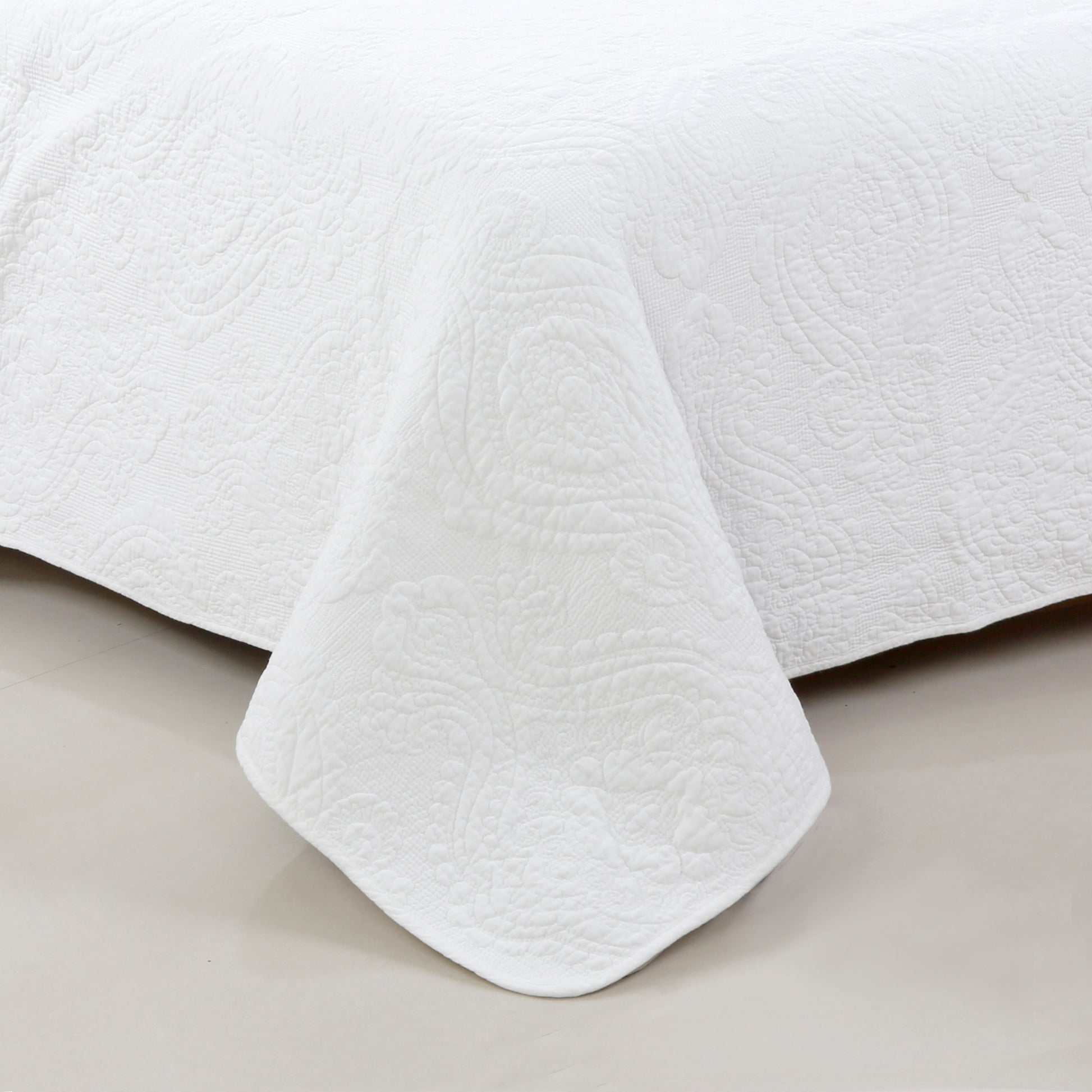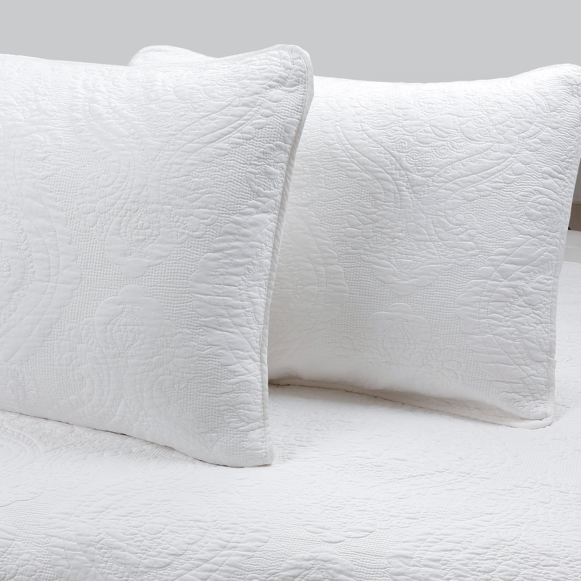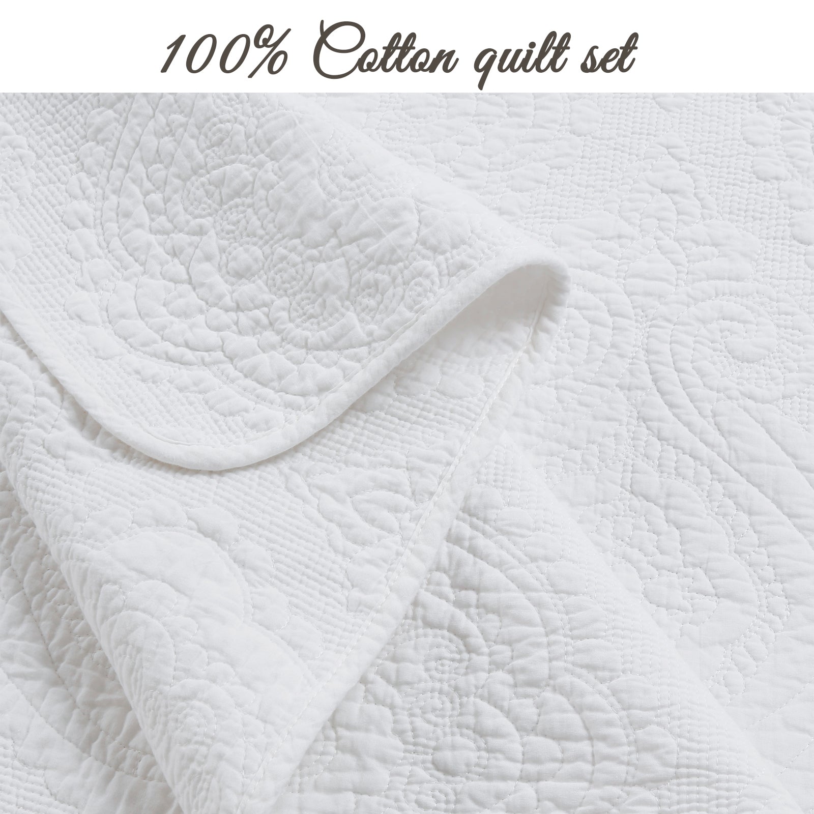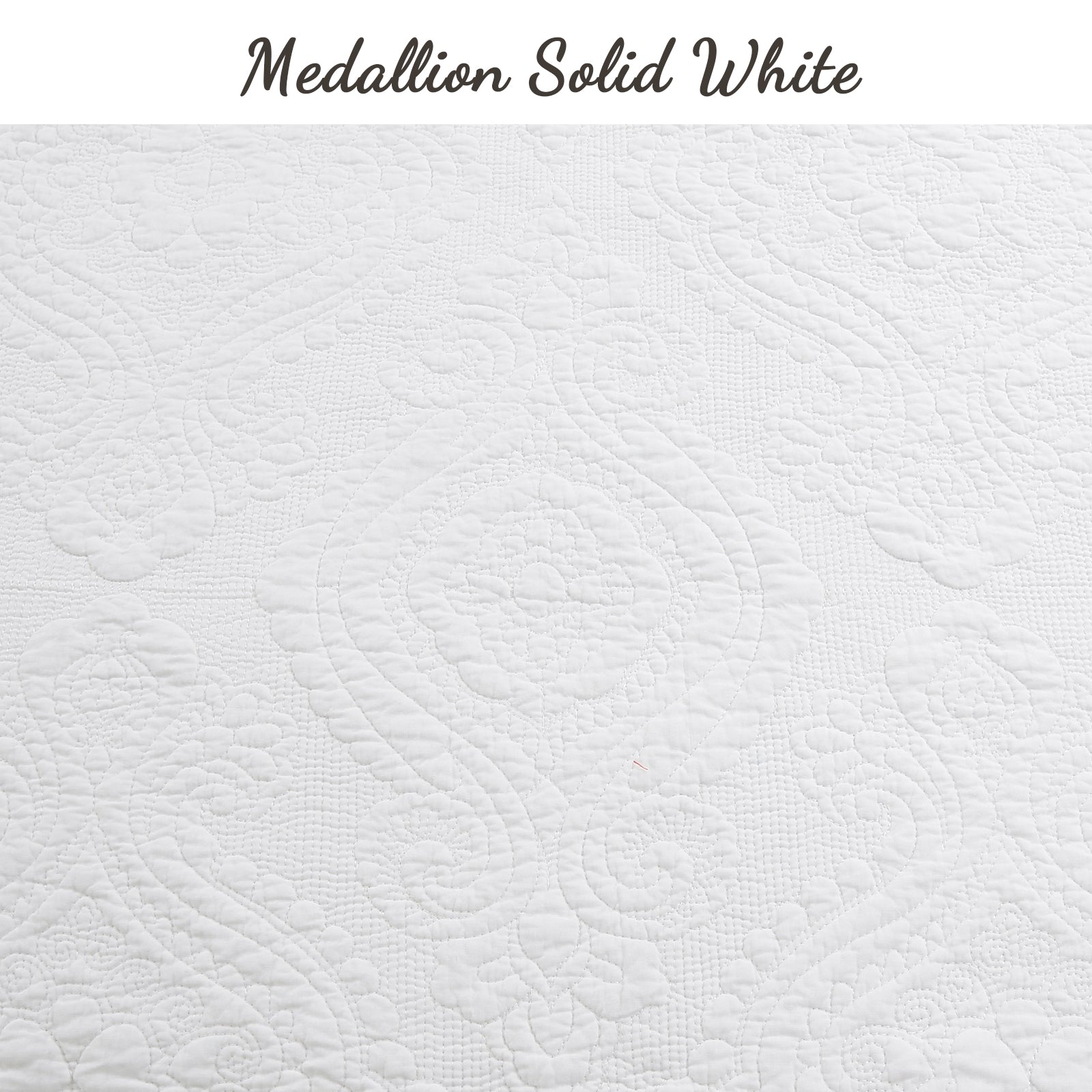 Solid White Chic Brocade Matelassé Medallion Floral Cotton Reversible Quilt Bedding Set