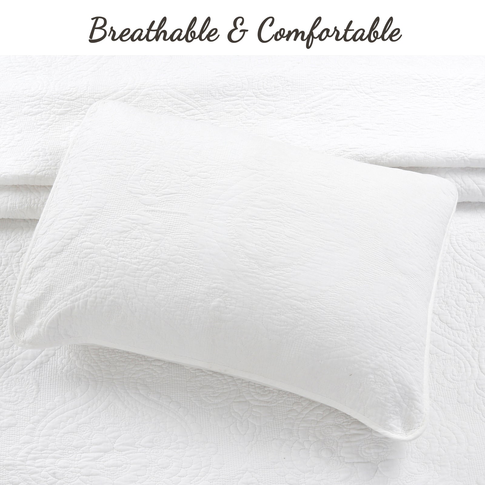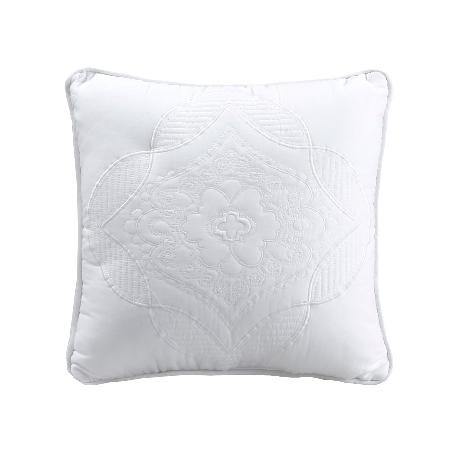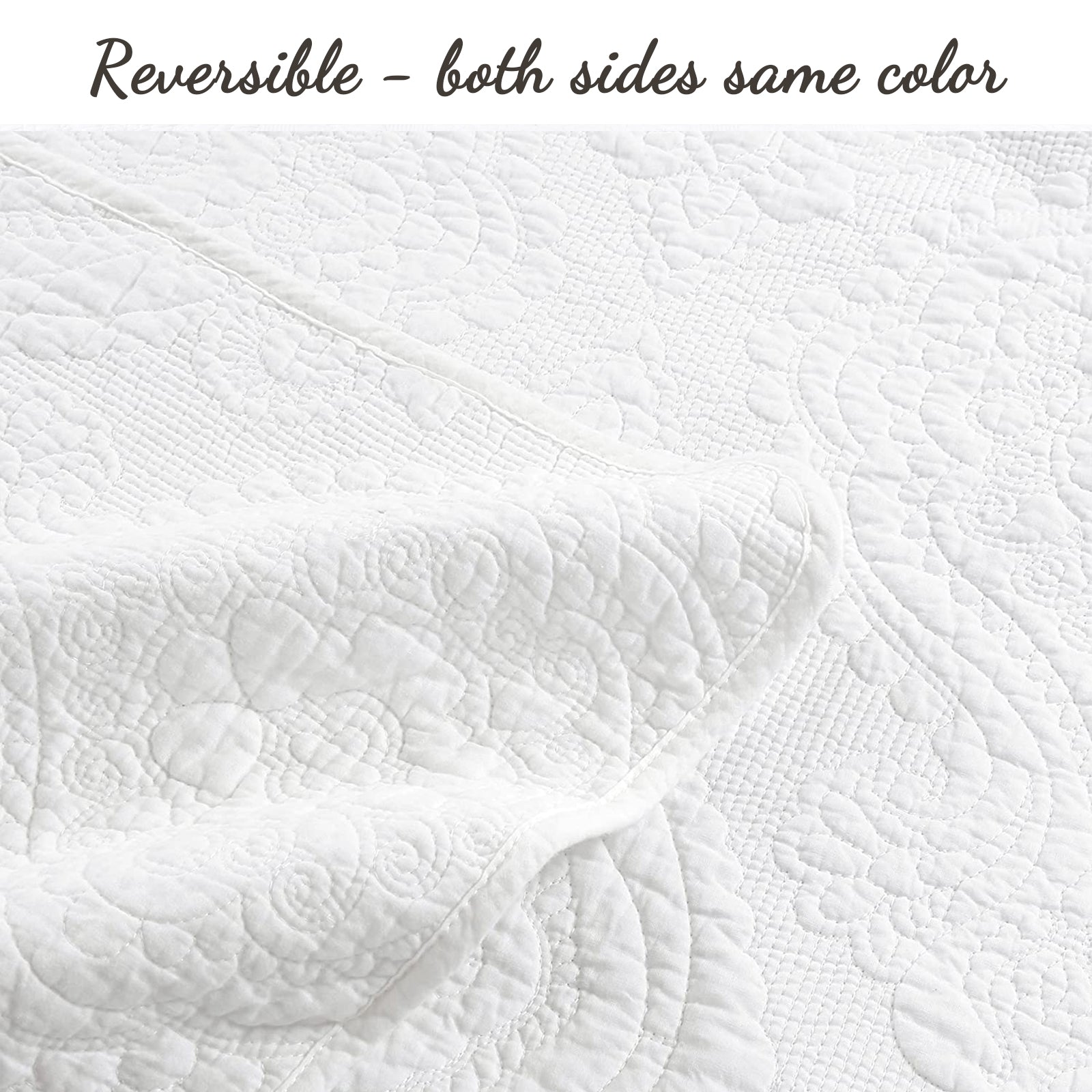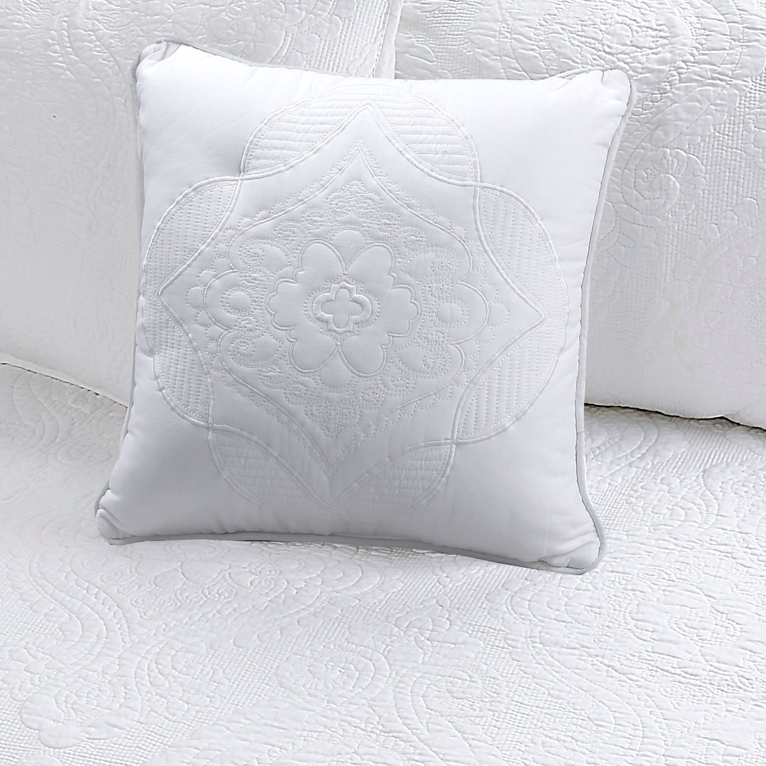 Solid White Chic Brocade Matelassé Medallion Floral Cotton Reversible Quilt Bedding Set