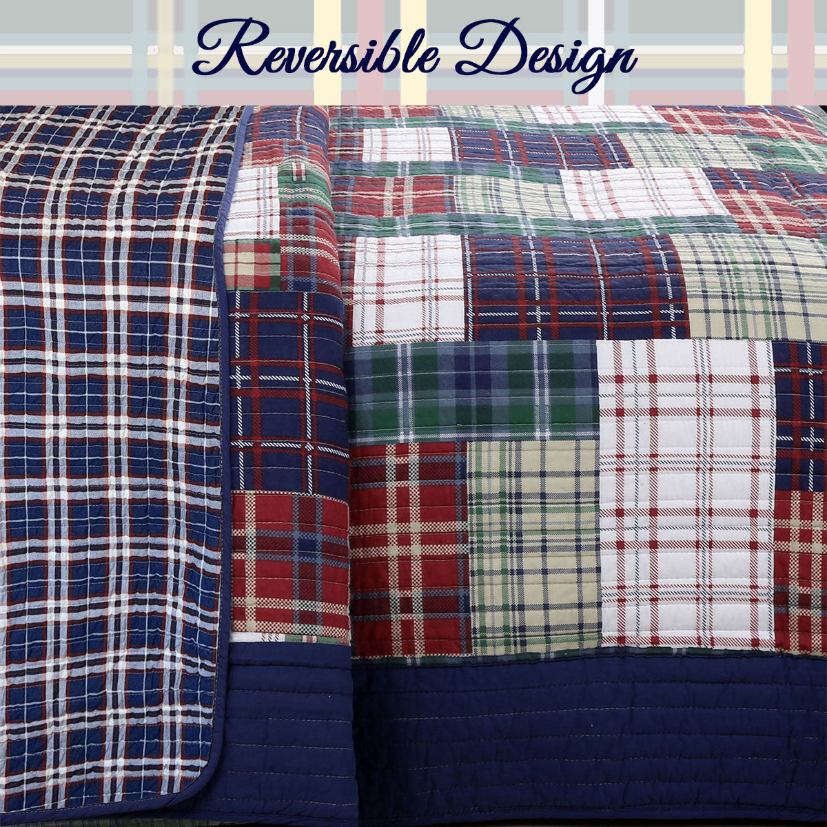 Hepler Plaid Print Patchwork Cotton Reversible Quilt Bedding Set