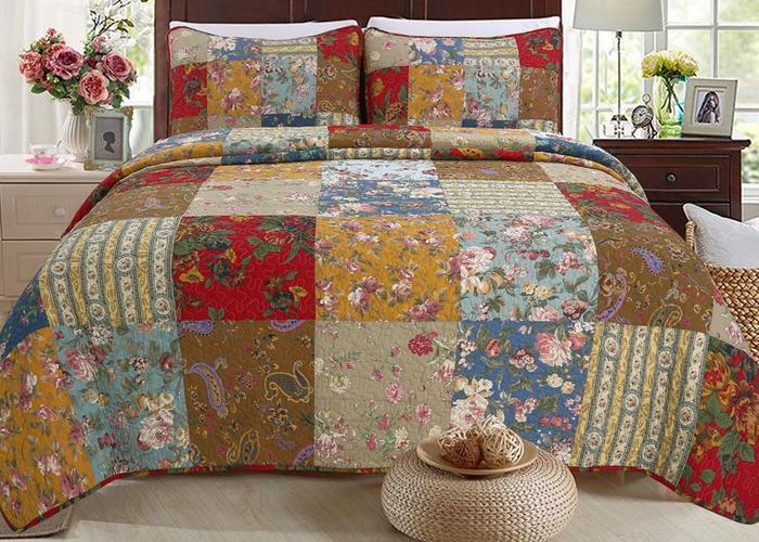 Ryleigh Floral Real Patchwork Country Garden Fall Flowers Paisley 3-Piece Cotton Reversible Quilt Bedding Set