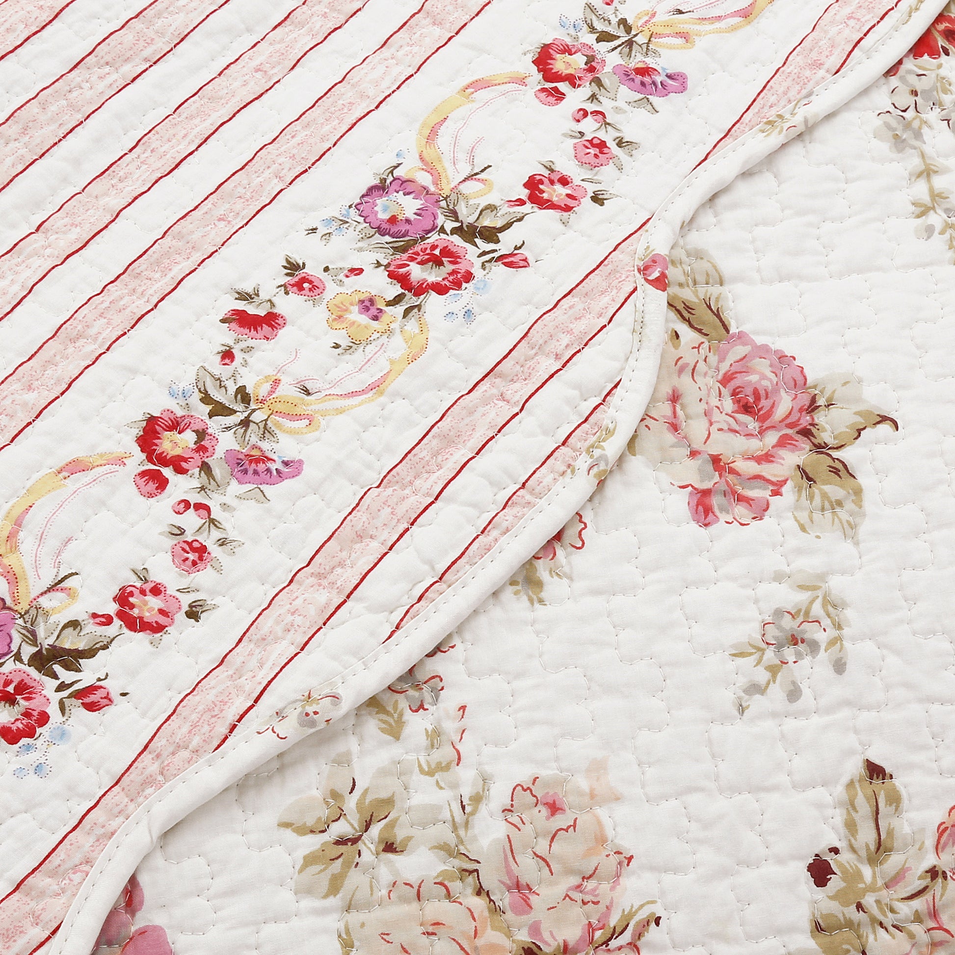 Spring Rose Floral Scalloped Cotton Quilted Reversible Decor Throw Blanket