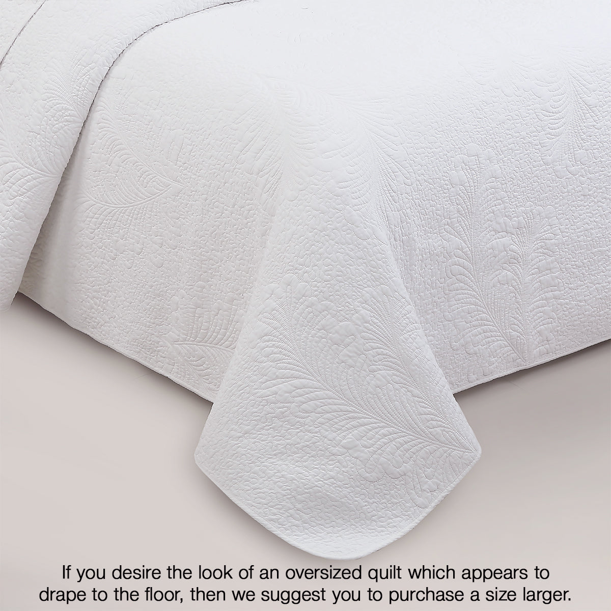 Classic Modern Palm Leaf Stitch Solid White 100% Cotton 3 Piece Quilt Bedding Set