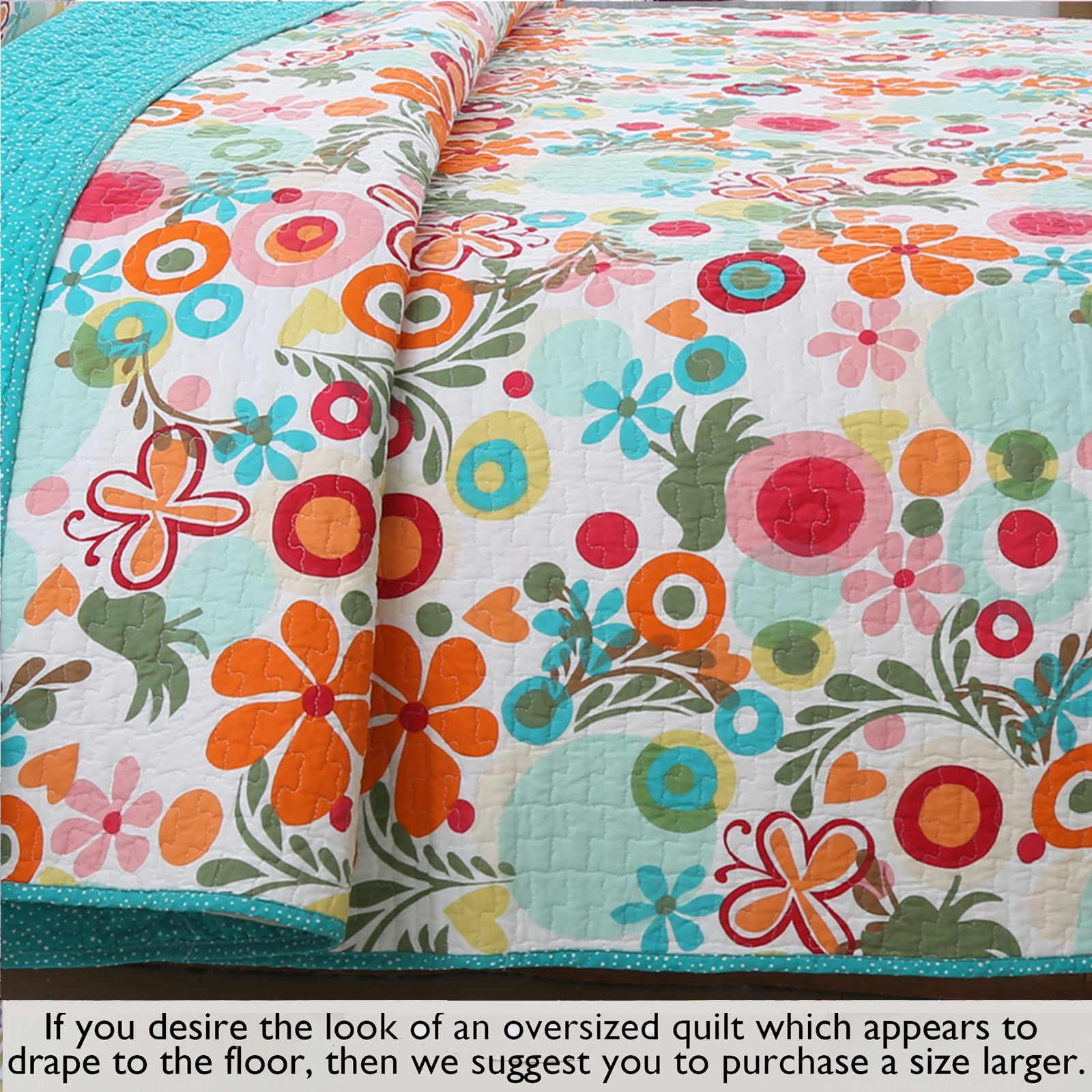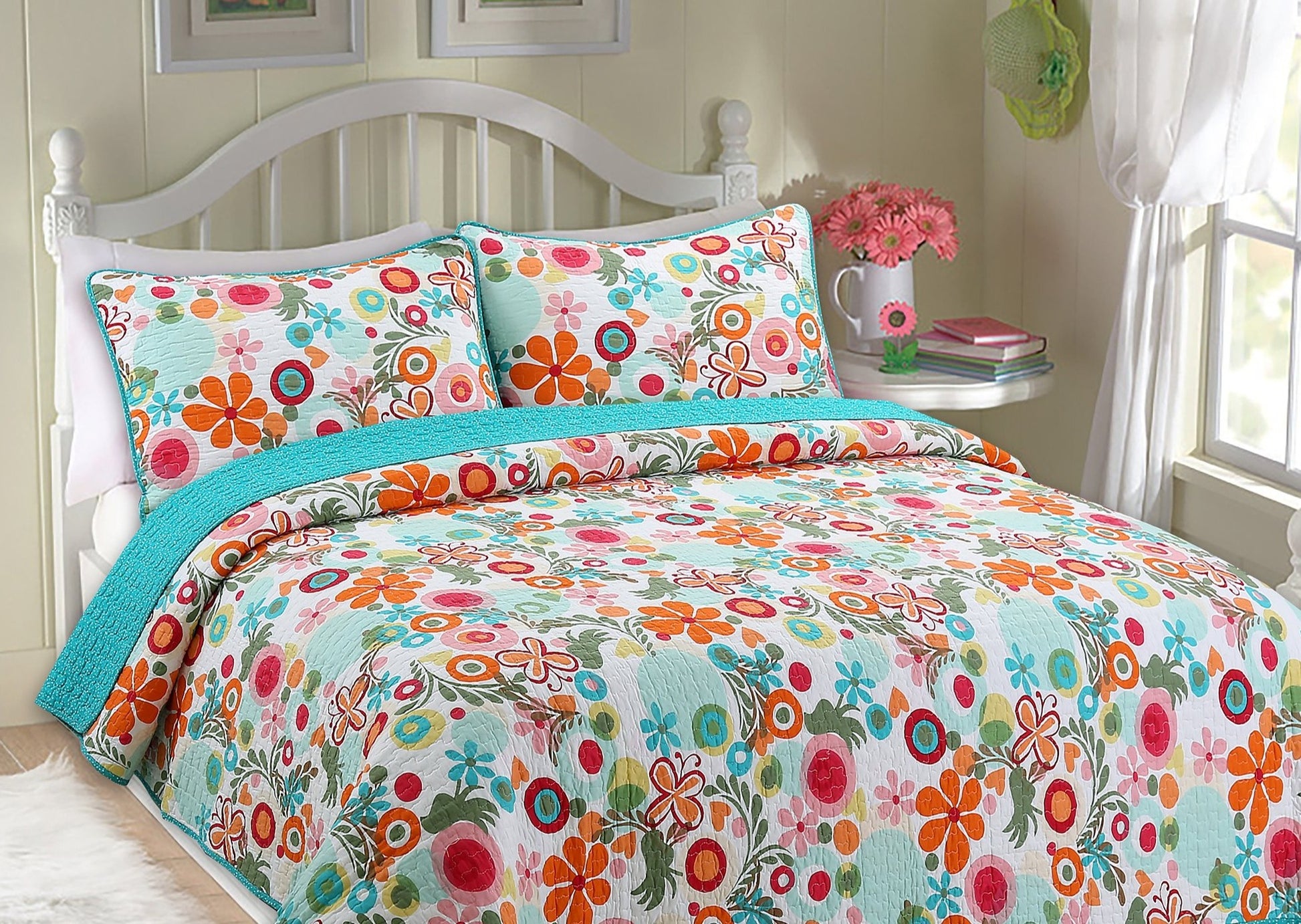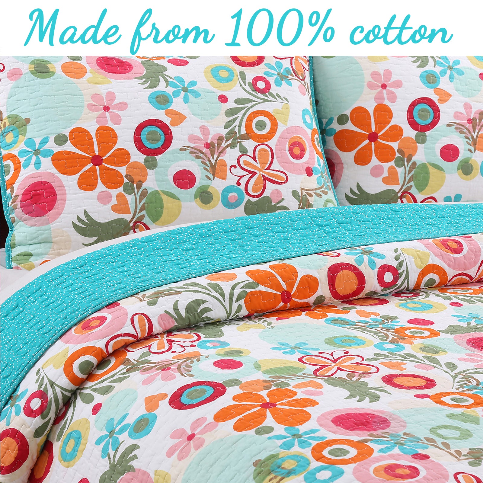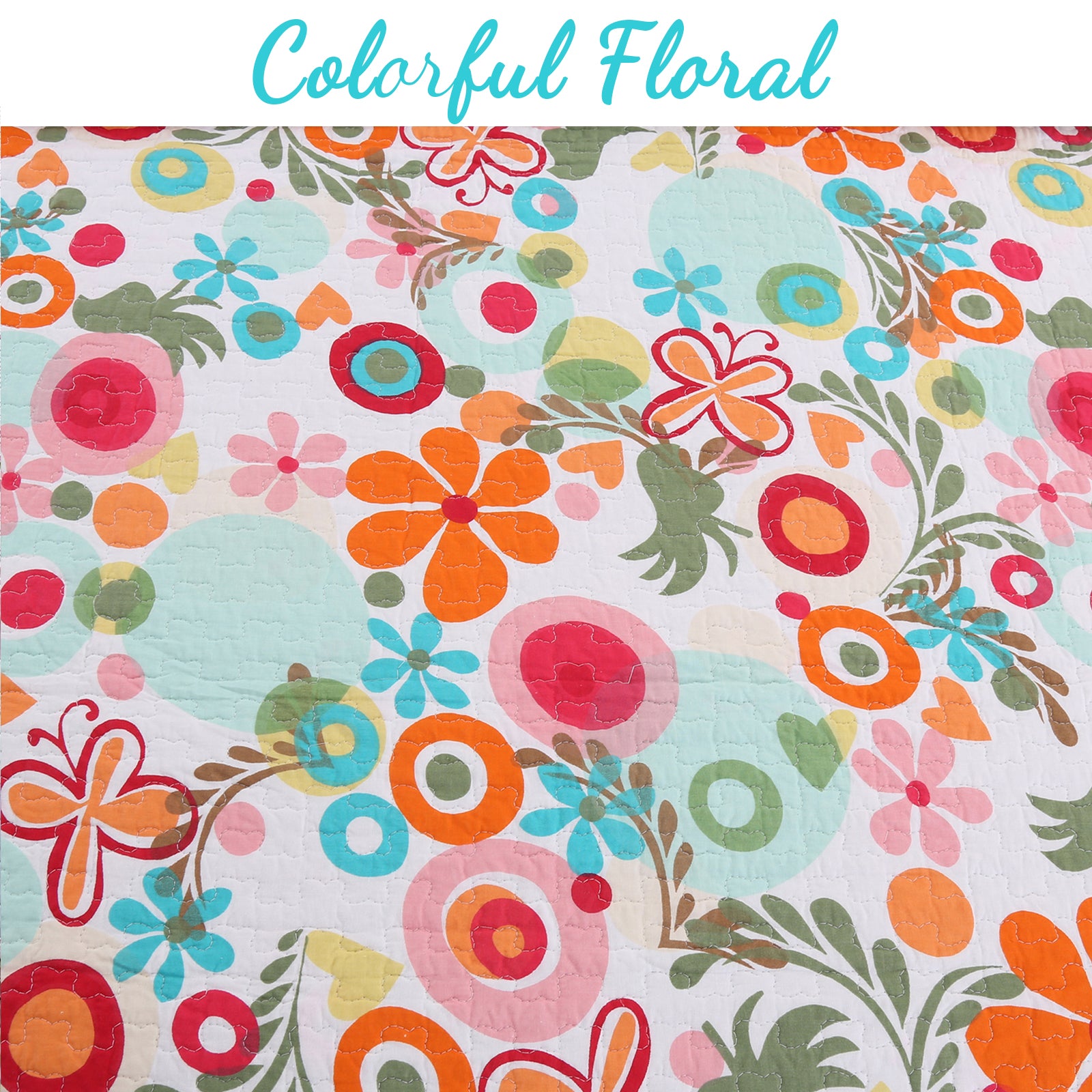 Floral Whimsy Colorful Cotton Reversible Quilt Bedding Set