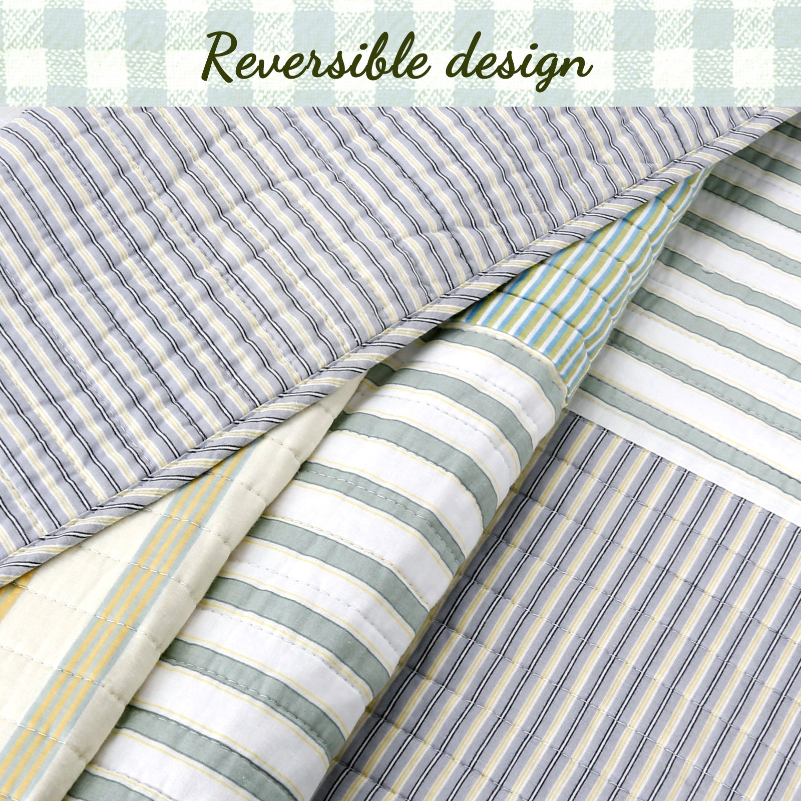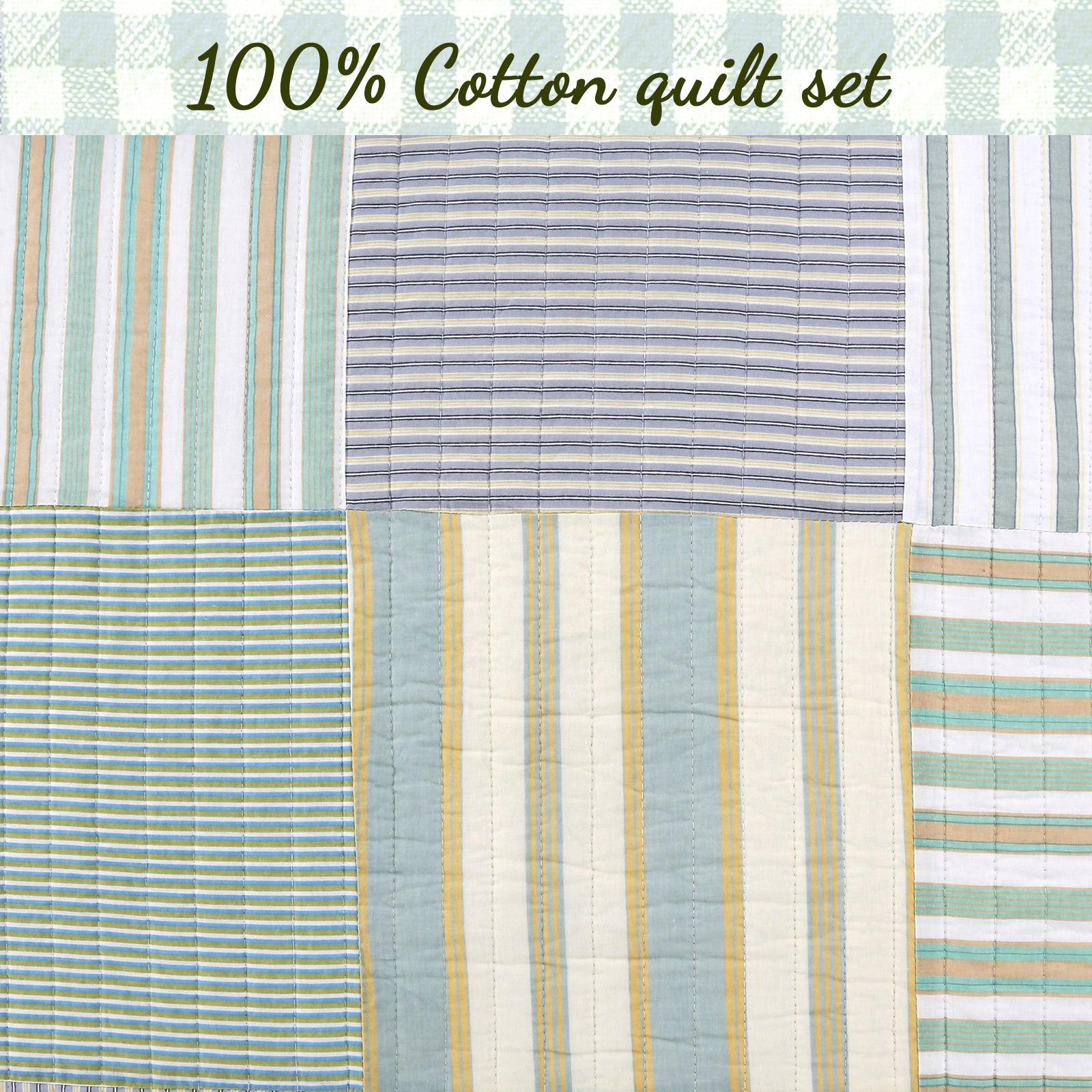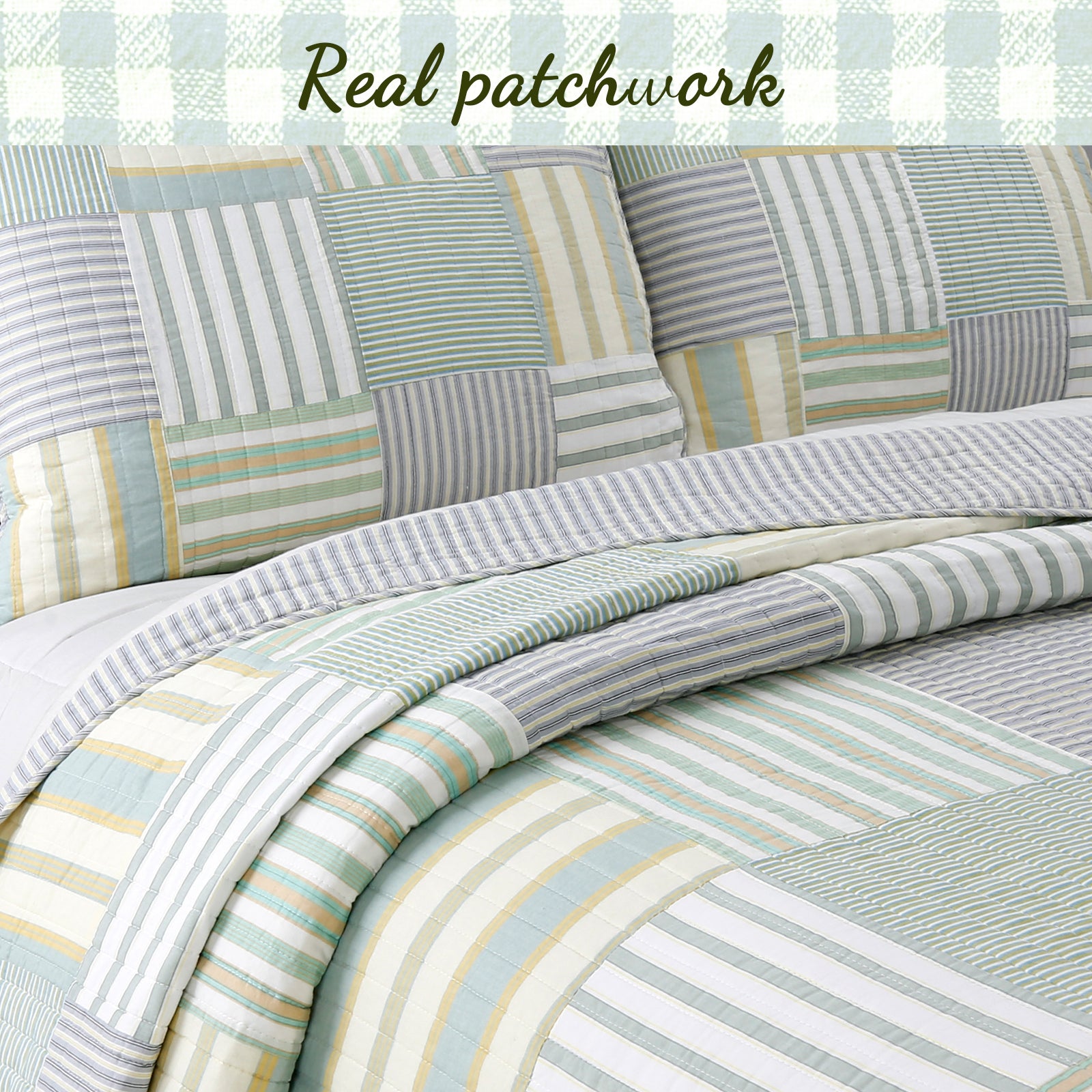 Spa Striped Real Patchwork Cotton Reversible Quilt Bedding Set