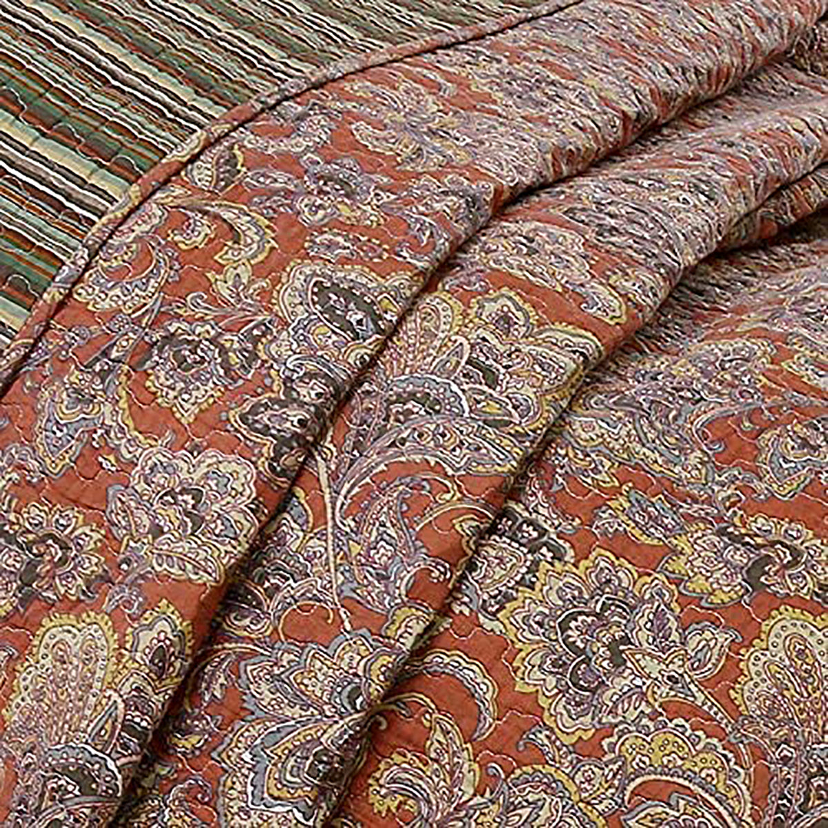Lara Paisley Vintage Rustic Bronze Country Fall Floral Copper Cotton Reversible Quilt Bedding Set