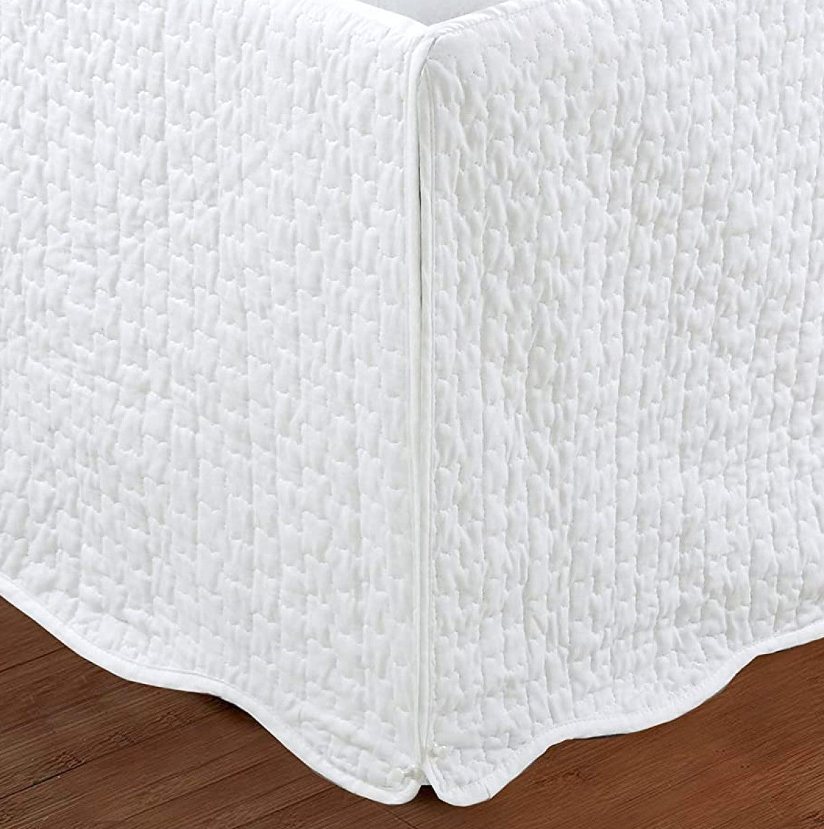 Tailored Bed Skirt White Quilted Matelasse Scalloped Cotton Dust Ruffle 16" Drop